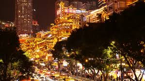 - Hồng Nhai Động – điểm nhấn lung linh khi lên đèn, được ví như bước vào thế giới huyền ảo của phim “Vùng đất linh hồn”. Là khu phố cổ 11 tầng lầu với mái ngói rêu phong, hoa văn chạm trổ, phía sau là những tòa nhà chọc trời, nằm ở khu trung tâm thương mại thành phố Trùng Khánh, bên bờ sông Dương Tử, là điểm bờ sông giao nhau của hai con sông Trường Giang và sông Gia Linh.